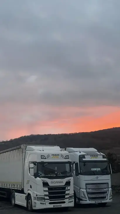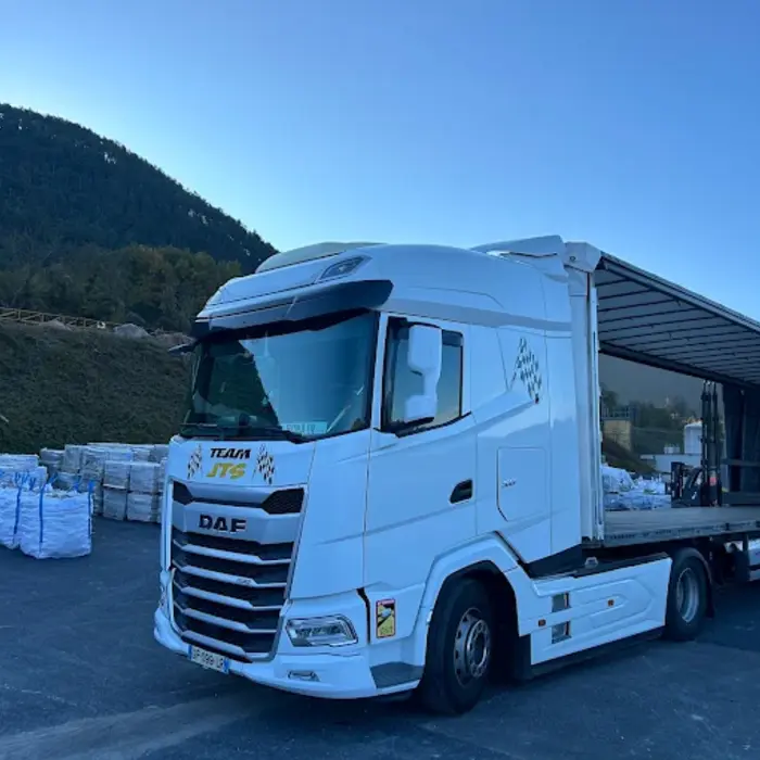 Team JTS dispose d’une flotte moderne, composée de 15 tracteurs homologués Norme Euro 6 et 19 remorques type Tautliner.
